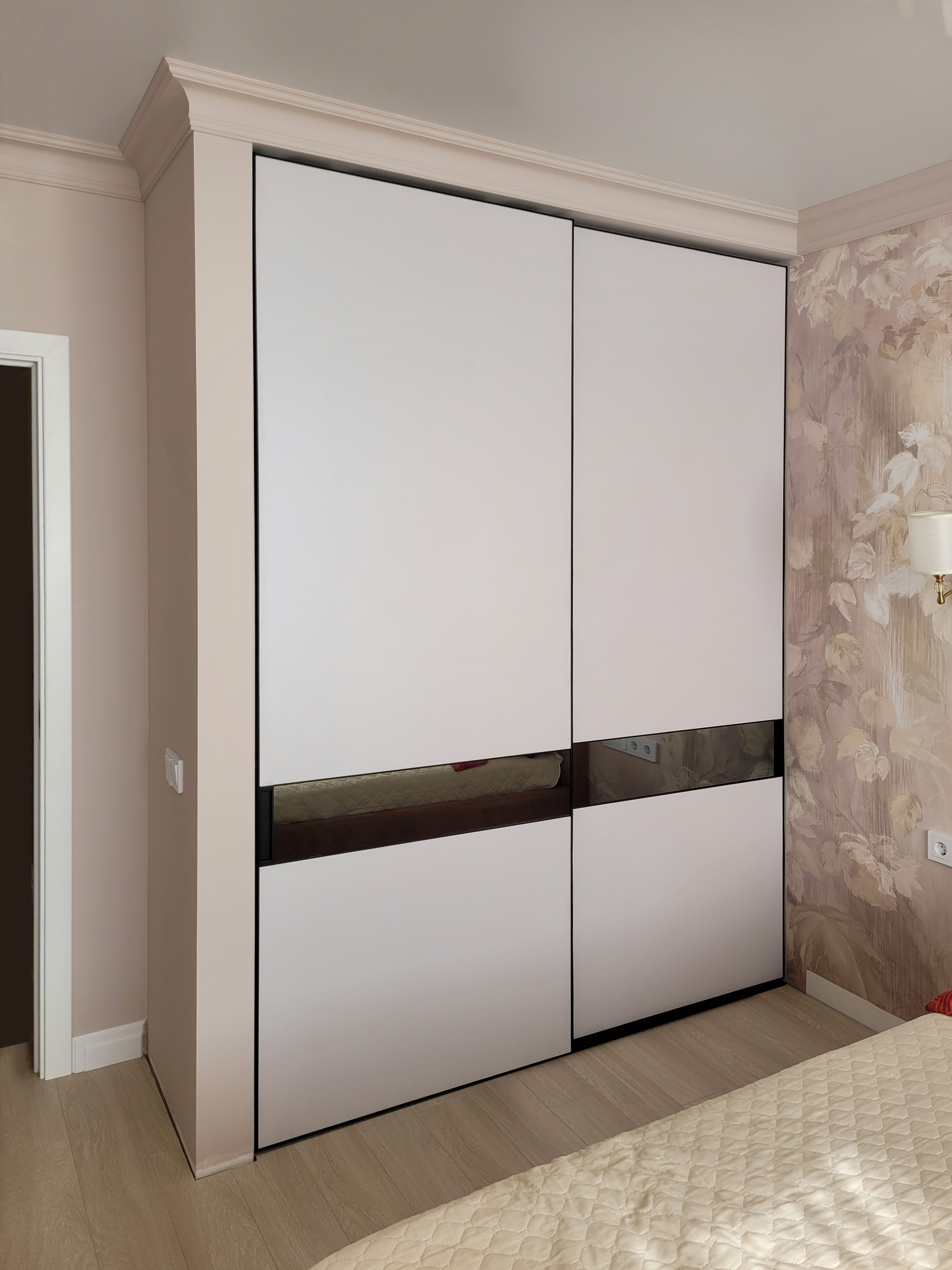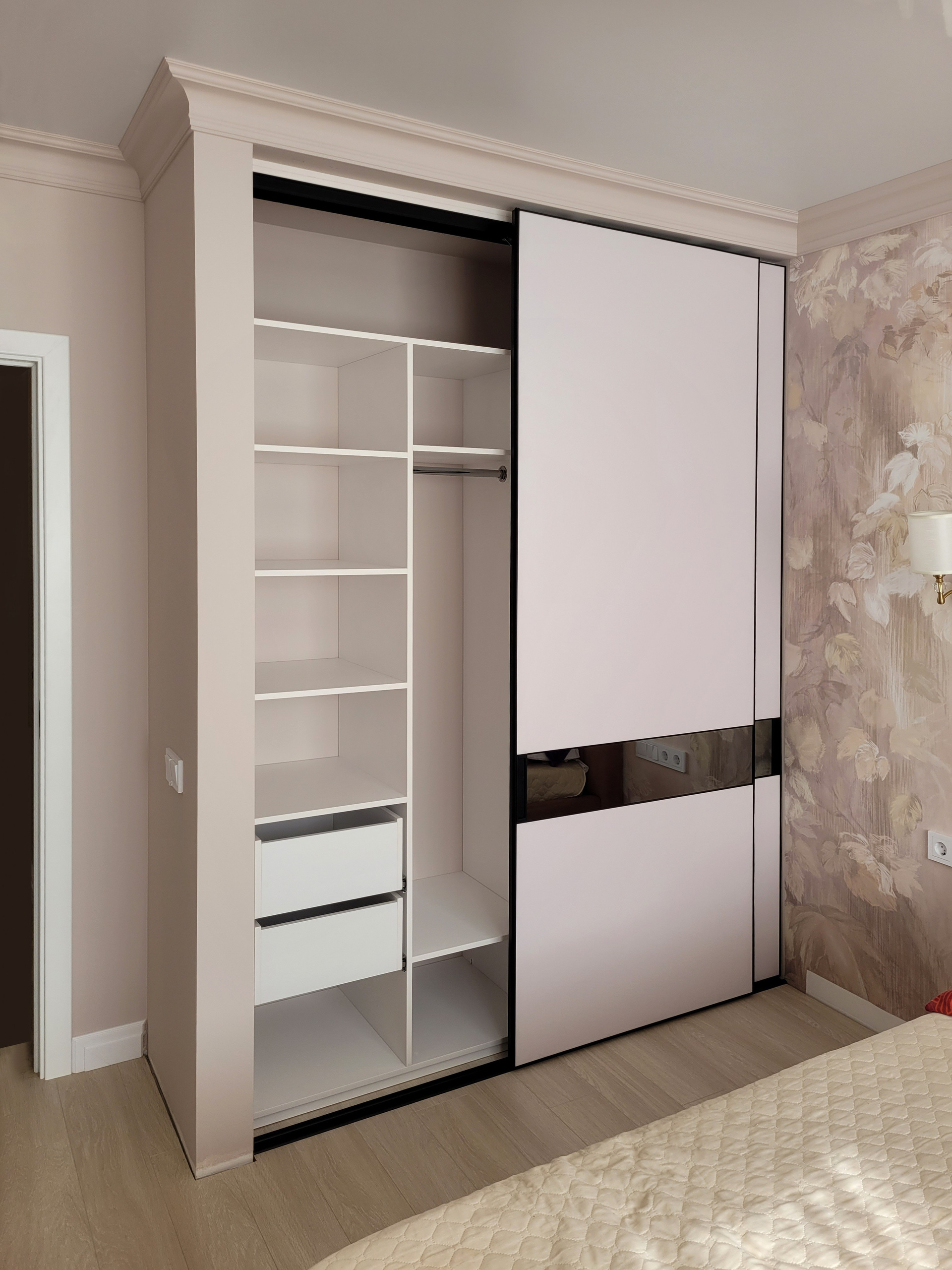 Большой выбор наполнений в двери купе: зеркало, ЛДСП, фотопечать, пластик, акрил, МДФ панели, лакобель (крашенное стекло), пескоструйная обработка, МДФ панели с фрезеровкой.