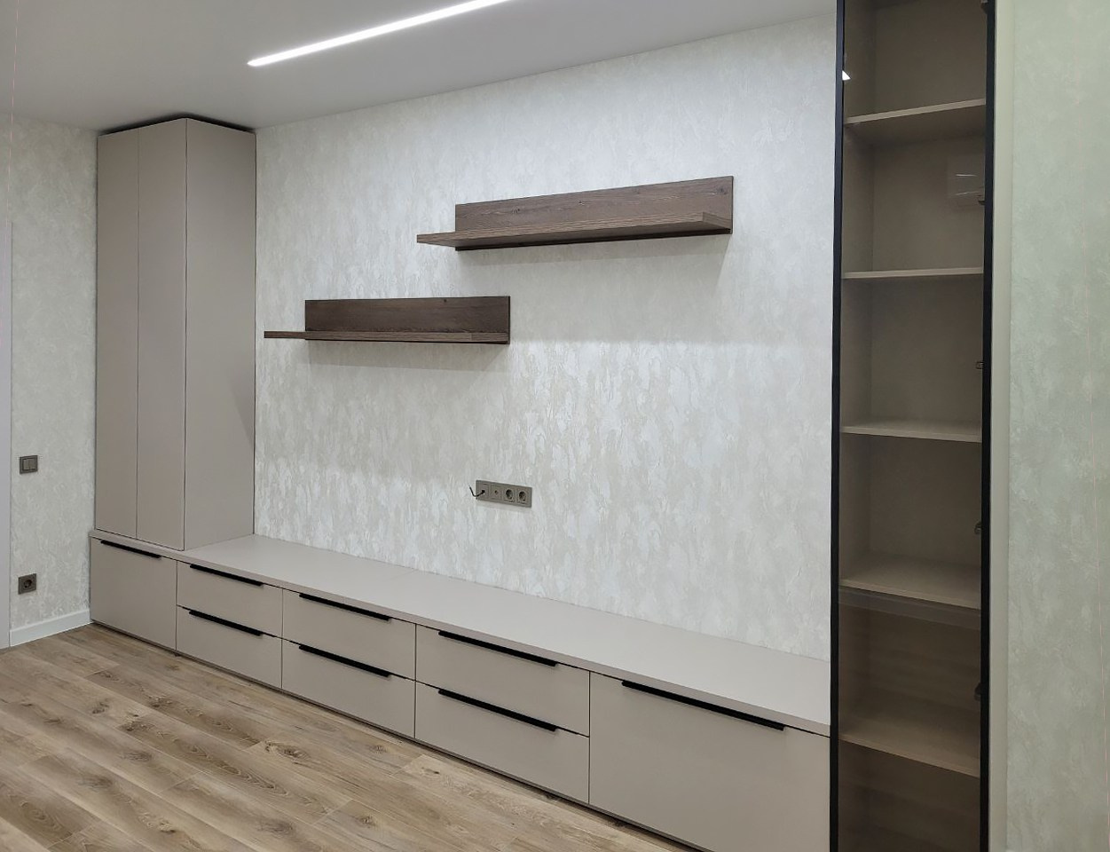 — фасады из МДФ пленки, итальянского пластика Arpa или Lamicolor, итальянского пластика Cleaf, крашенного МДФ (матовые, глянец), акрилового пластика
